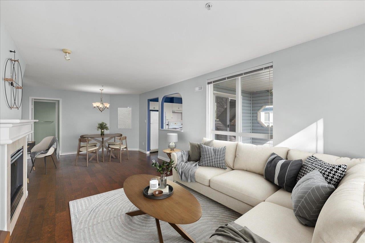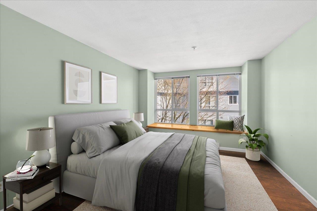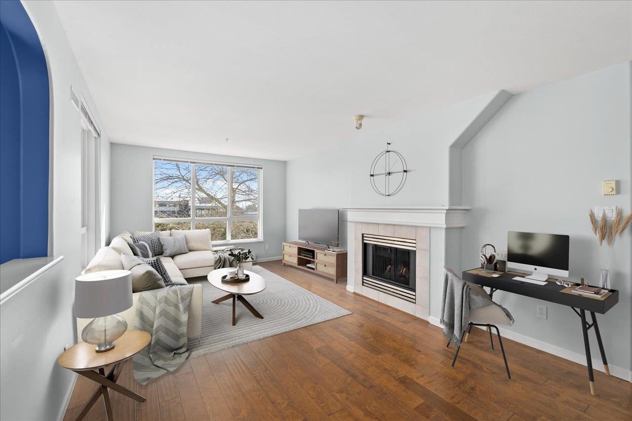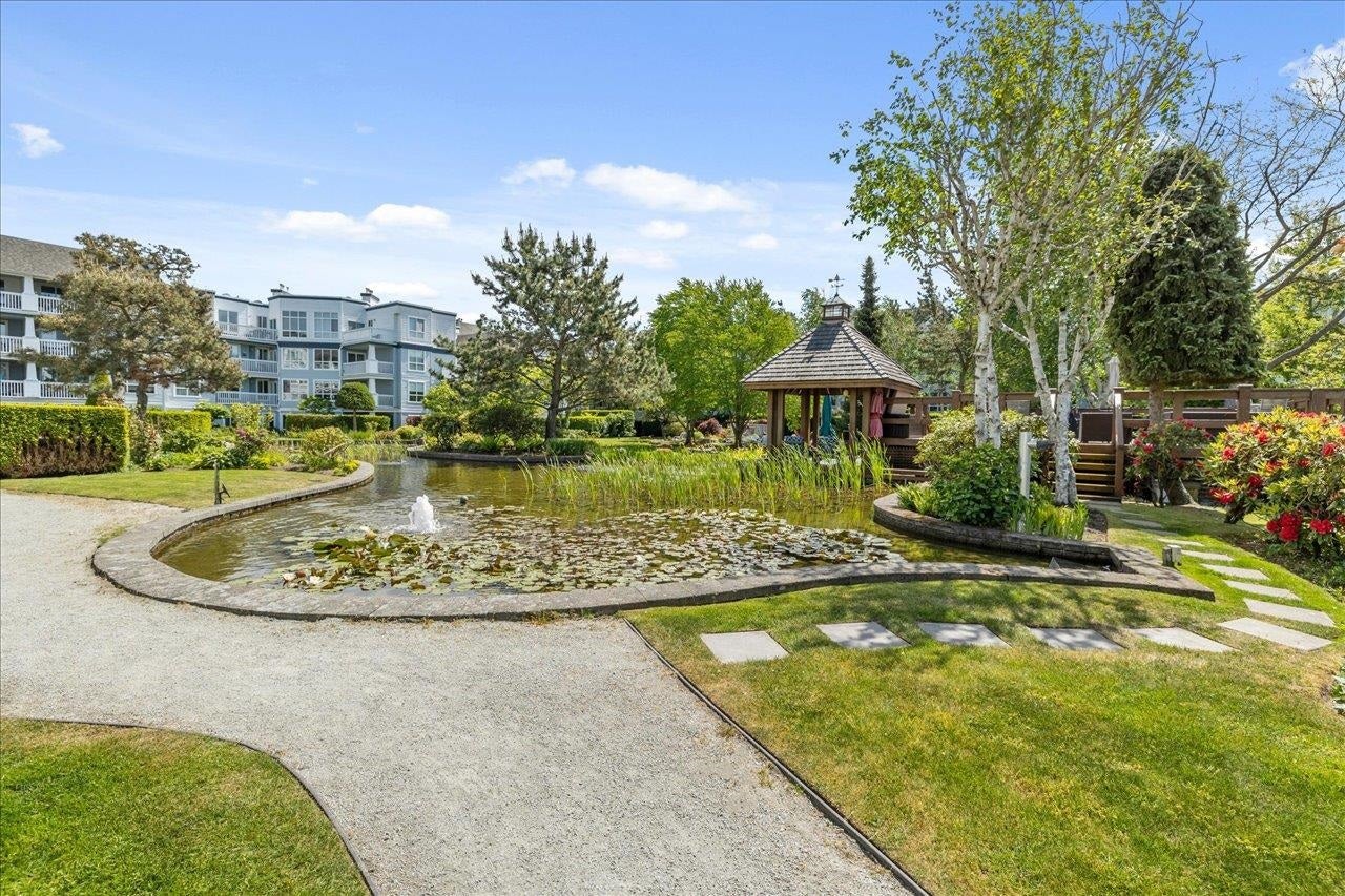 Welcome to Nautica South! This bright and spacious 2 bedroom, 2 bathroom CORNER suite has plenty to offer including a functional layout with a generous living room, large primary bedroom complete with a cozy window seat, walk in closet and ensuite. Other features include handscraped, engineered hardwood throughout, 2 tandem parking stalls, a storage locker across the hall on the same floor. Hot water and gas included in the maintenance fee. Steps to walking trails, coffee shops, restaurants, the marina and everything else that charming Steveston has to offer.