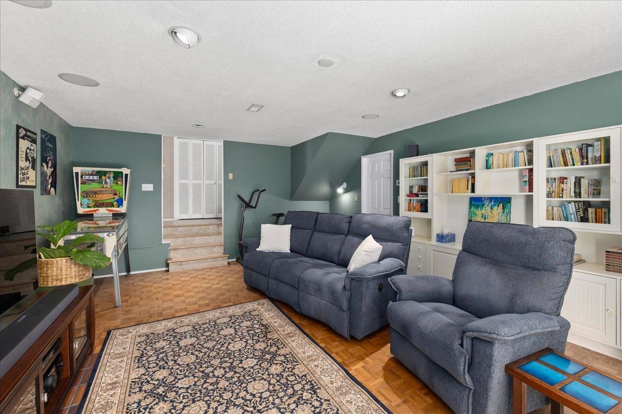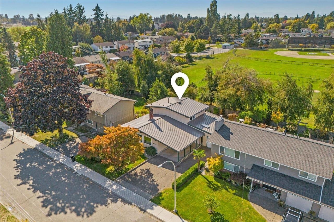 Welcome home! This rarely available "Scandia back split" offers 3 bedrooms and 1.5 bathrooms with a west facing backyard, backing onto Maple Crescent Park. The unique layout offers character and style with vaulted ceilings and exposed beams and a floor to ceiling brick fireplace in living and dining room adjoining the comfortable kitchen. A spacious family room on the lower level, adjacent to a large utility room that is roughed-in for a 3rd bathroom. This home has been meticulously cared for and updated with many quality improvements including high-end custom European windows, a newer metal roof with Leafguard gutters, newer furnace complete with A/C, all new PEX plumbing and a new HW tank. Other features include 220v outlet in the single car garage, central vac, and ample parking.