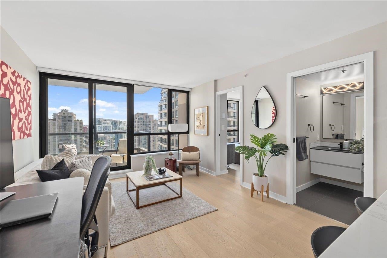 Welcome to Yaletown Park I, where chic urban living meets modern luxury. This fully renovated 1-bedroom suite exudes sophistication with a stunning kitchen featuring waterfall quartz countertops, custom cabinetry, sleek tile backsplash, full-size appliances and new engineered hardwood floors., The bathroom showcases a custom glass shower, new vanity, elegant tilework and premium fixtures. Thoughtful upgrades include custom closet organizers, fresh designer paint, new lighting and modern switches throughout. Complete with 1 parking and 1 storage locker, this home is steps to Yaletown's vibrant dining, shopping and lifestyle - an elevated living experience in the heart of it all.